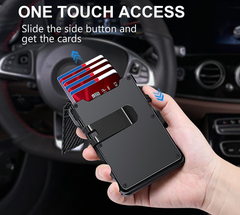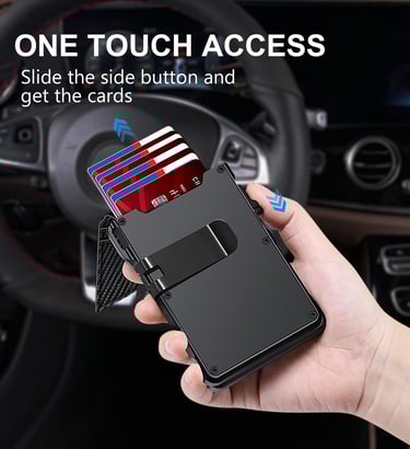 KIKVES Men Wallet featuring one-click pop-up card access, airtag slot design, large capacity, high-quality leather materials, RFID protection, strong magnetic closures, and considerate packaging.