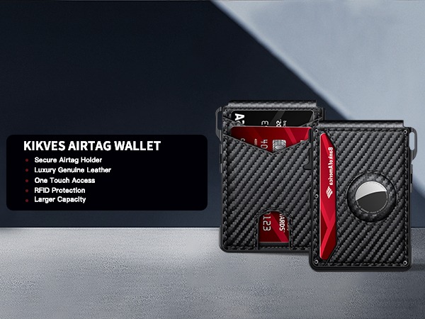 KIKVES minimalist wallet for men with air tag holder fits effortlessly in pockets without bulk, yet holds 12+ cards, cash, and AirTag securely.